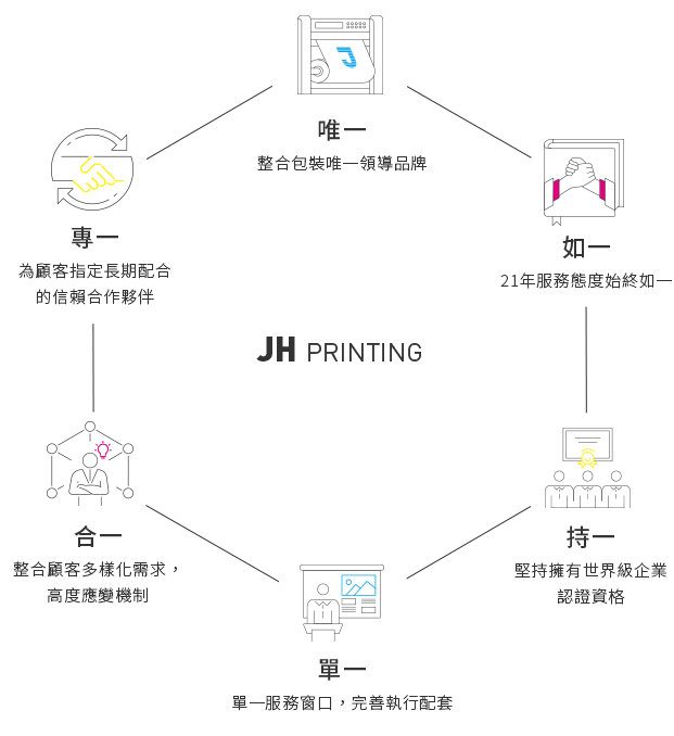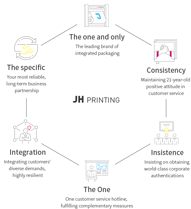 JH Printing has the internationally-recognized quality certification of ISO9001, meeting its quality management system standard. It is how we pursue the stability of the quality of products. It shows our persistence and competency.