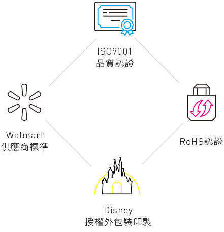 In order to fulfill corporate social responsibility and the requirements of environmental protection, JH Printing meets the qualifications for cooperative businesses of The Walt Disney Company. We are one of the few printing companies recognized by The Walt Disney Company.